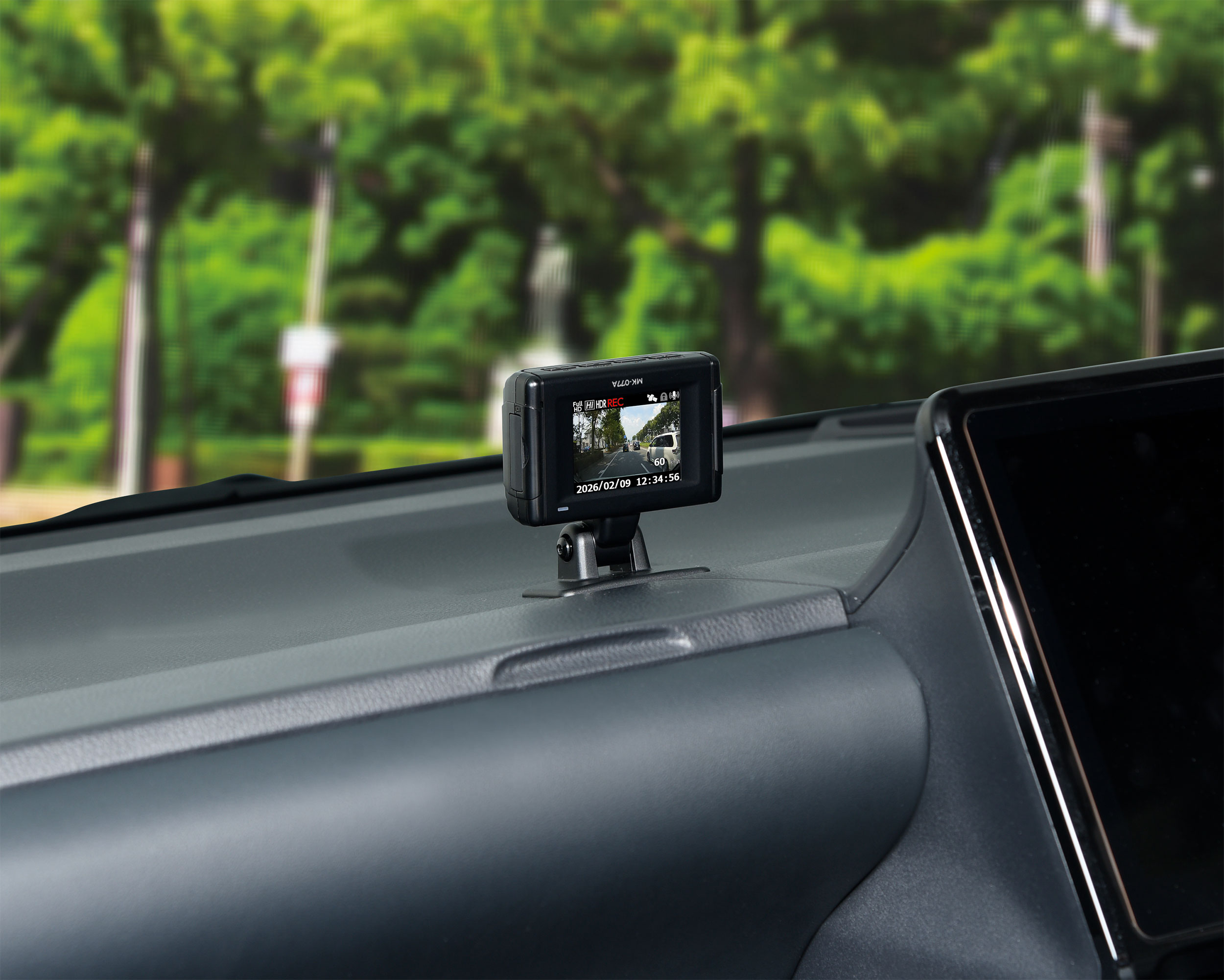 MK-077Aは、後続車接近お知らせ機能、先行車接近お知らせ機能、先行車発進お知らせ機能、車線逸脱お知らせ機能、車速アラーム機能など、合計7種類の運転支援機能を搭載。日常運転の気づきをサポートし、安全運転を後押しします。